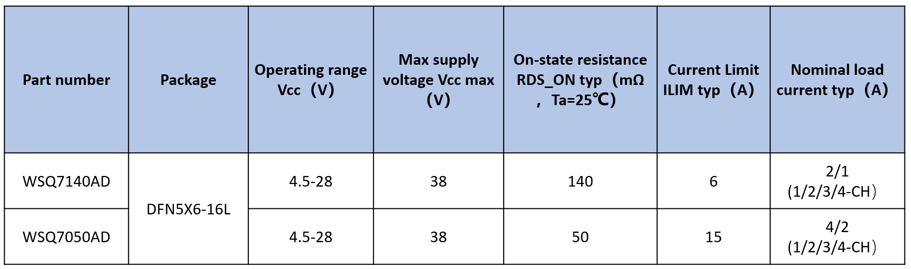 四通道高邊開關(guān)芯片WSQ型: